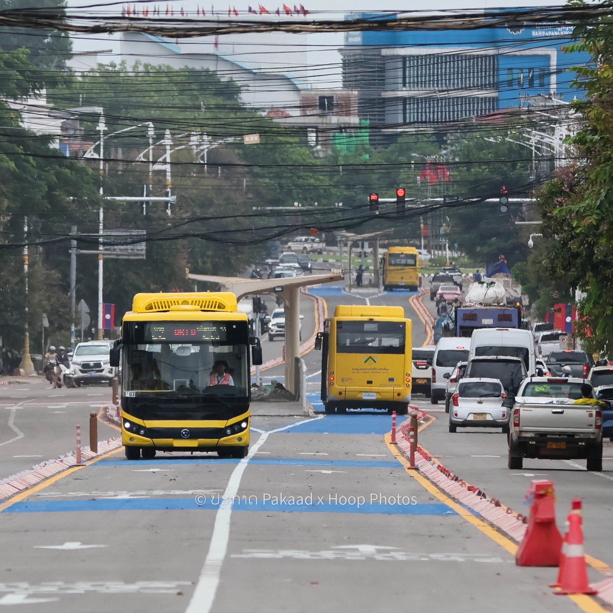 ເປັນອີກພາບ ທີ່ໜ້າປະທັບໃຈ ສໍາລັບຊາວນະຄອນຫຼວງວຽງຈັນ ທີ່ໄດ້ເຫັນຂະບວນລົດເມ ບີອາທີ (BRT) ໄດ້ອອກແລ່ນທົດສອບລະບົບ ໃນເສັ້ນທາງເປັນທີຮຽບຮ້ອຍ ເພື່ອໃຫ້ສົມການຄອງຄອຍການເປີດບໍລິການ ຢ່າງເປັນທາງການໃນມໍ່ໆນີ້
