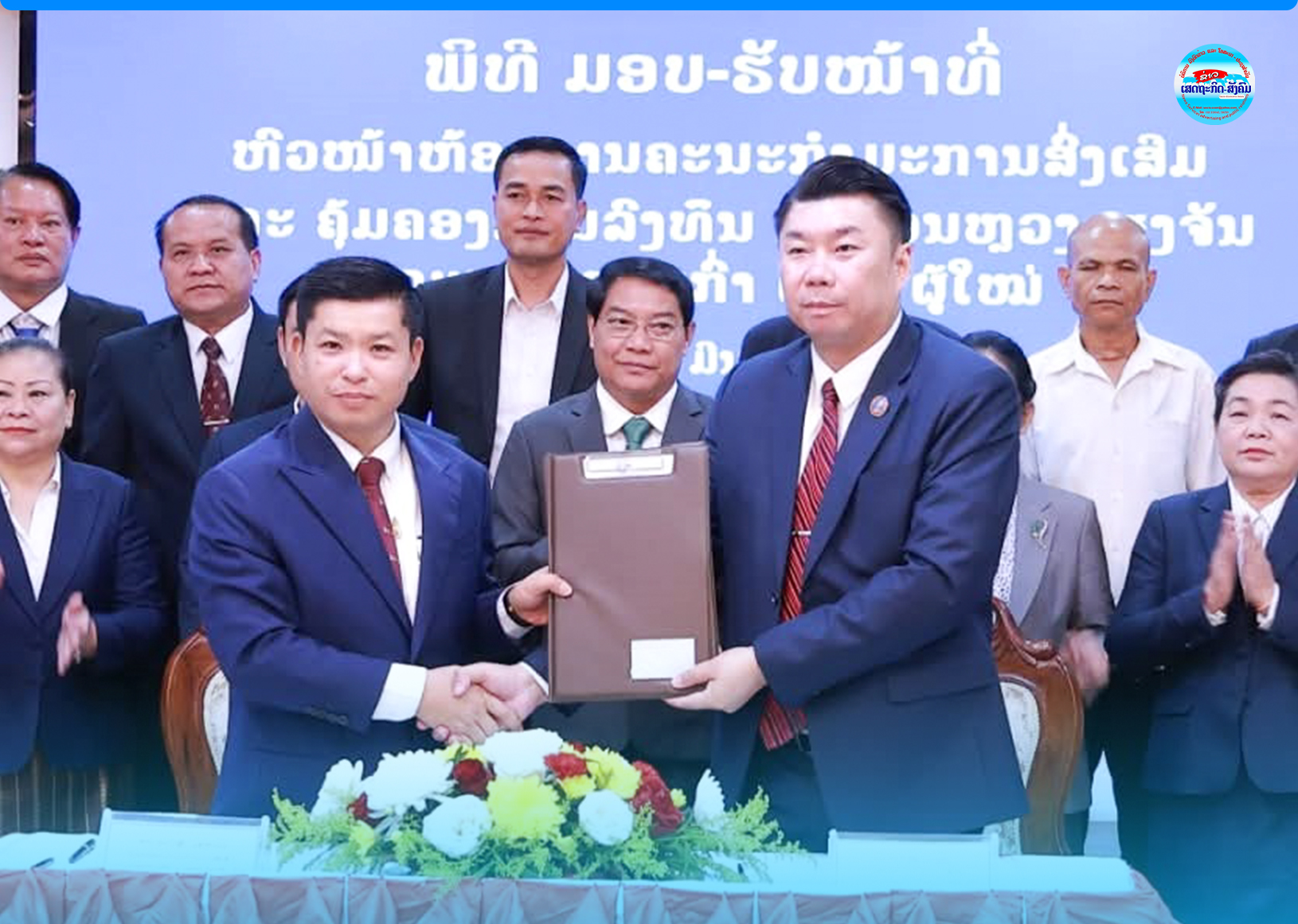 ພິທີມອບ-ຮັບໜ້າທີ່ຫົວໜ້າຫ້ອງການຄະນະກຳມະການສົ່ງເສີມ ແລະ ຄຸ້ມຄອງການລົງທຶນນະຄອນຫຼວງວຽງຈັນລະຫວ່າງຜູ້ເກົ່າ ແລະ ຜູ້ໃໝ່
